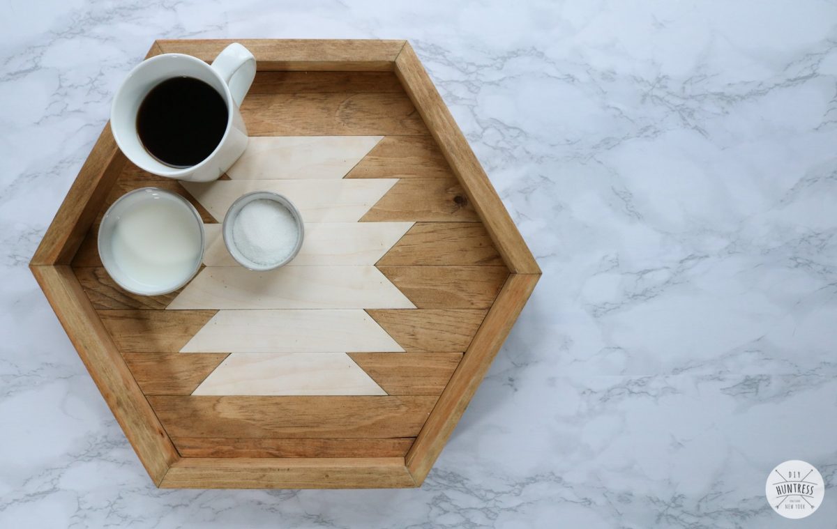 Los detalles geométricos pueden agregar algo de diversión a su espacio vital. Pruebe este proyecto para crear una hermosa bandeja de madera para servir que seguramente lo impresionará.