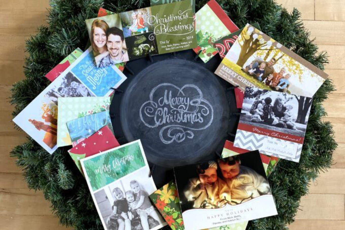 Hágalo usted mismo: Corona de tarjetas de Navidad
